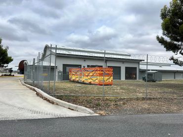 Mesh printed design, depicting Bunjil as the Aquila constellation and the sky at dusk, measuring 70 metres wrapping around the gallery